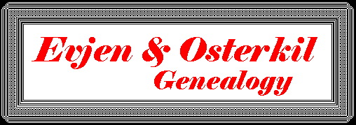 If you are vaguely related to either Andrew Evjen or Halvor Osterkil and if you're from the United States or Norway, I encourage you to e-mail me any material (photographs or text) that you would like to see included. Also, if you find errors or missing information in any of these text blocks, please e-mail me the changes. If you click on the EDIT button found at the top of each block to submit your e-mail, then I will know which block you're talking about. Thank you in advance for any e-mail you might send.